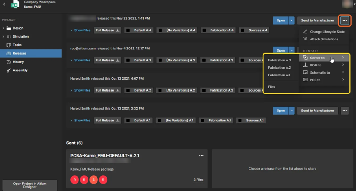 - Altium 365 Managed Project Comparison (recommended for release-to-release verification)