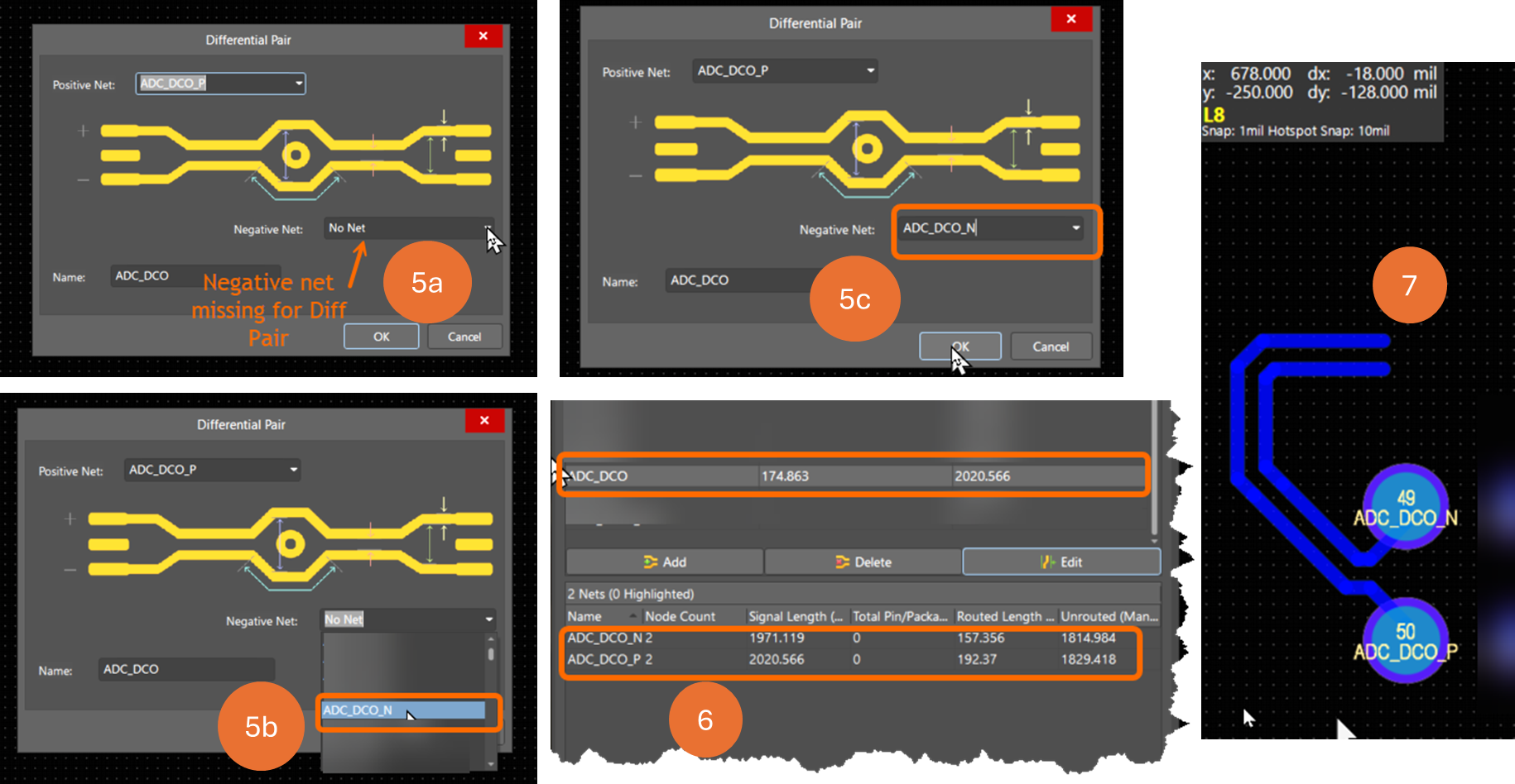 6. In the PCB Panel, verify both nets are assigned to each pair.