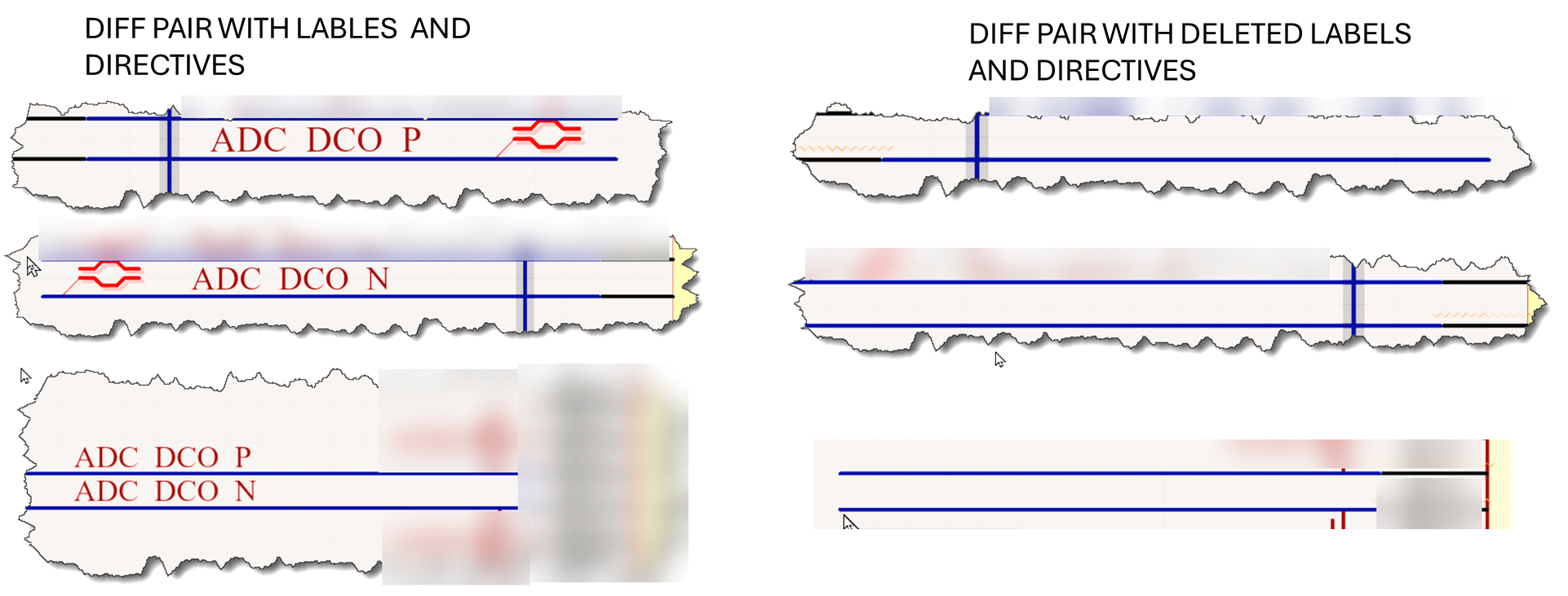 Delete labels and directives for the affected differential pairs