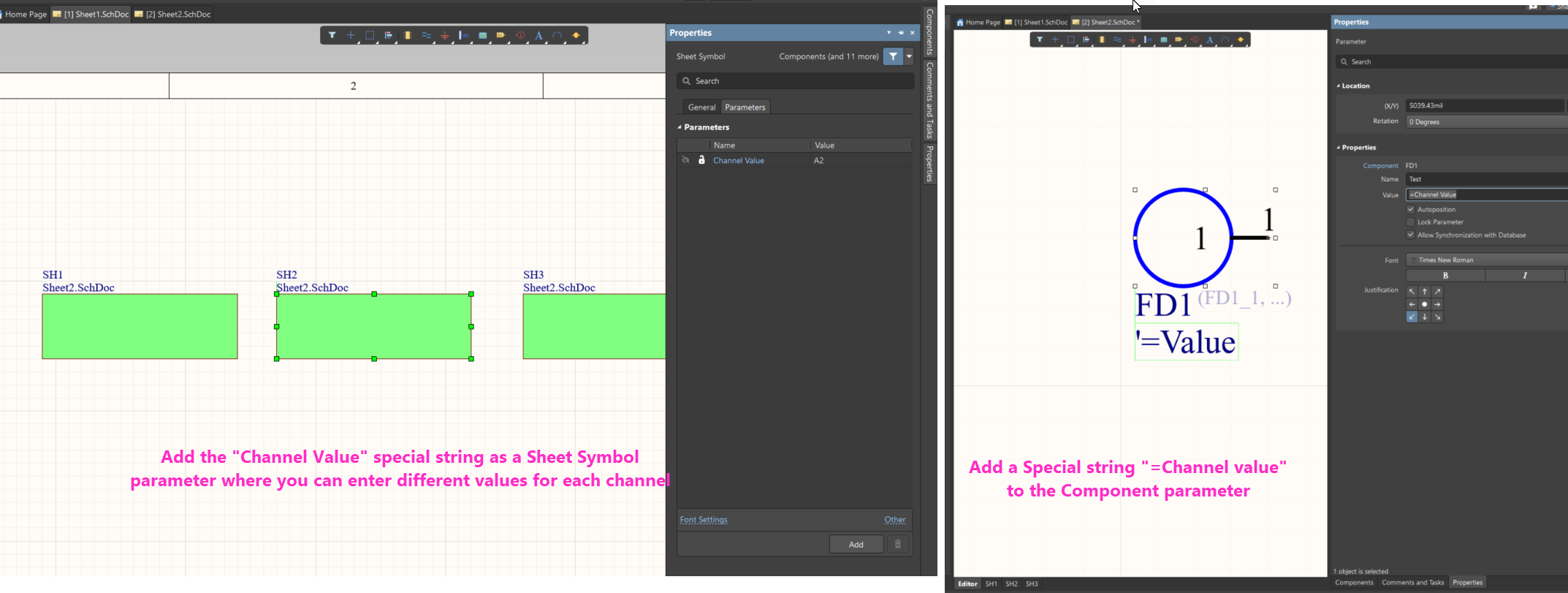 2. Check the component on each channel sheet: the Channel Value parameter should now reflect the unique value defined on the corresponding sheet symbol.