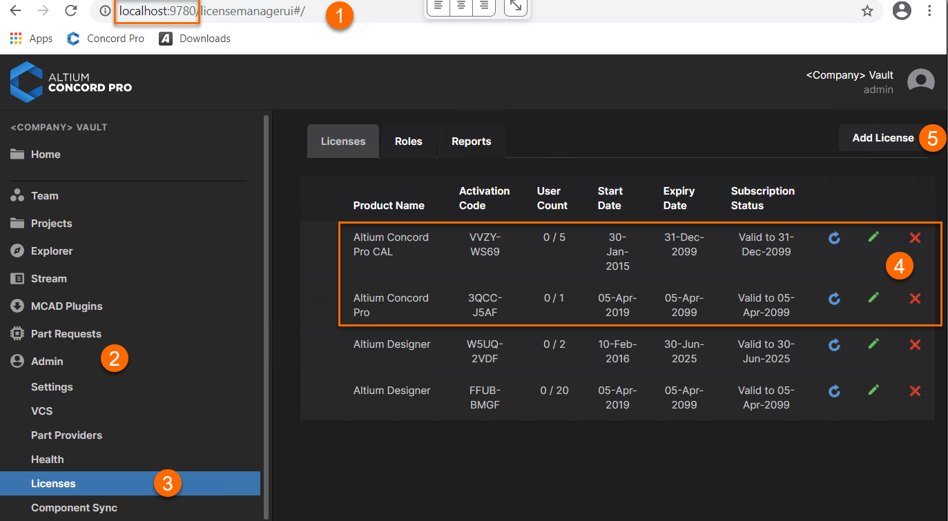 Note: If your server is not connected to the internet, use the "Add Licenses" button after you have the *.alf file(s) downloaded from AltiumLive Dashboard. This video covers how to get your license *.alf file(s).