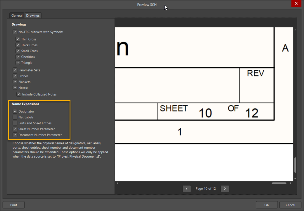 *, go to Drawings » Name Expansions. - Enable the Sheet Number parameter.