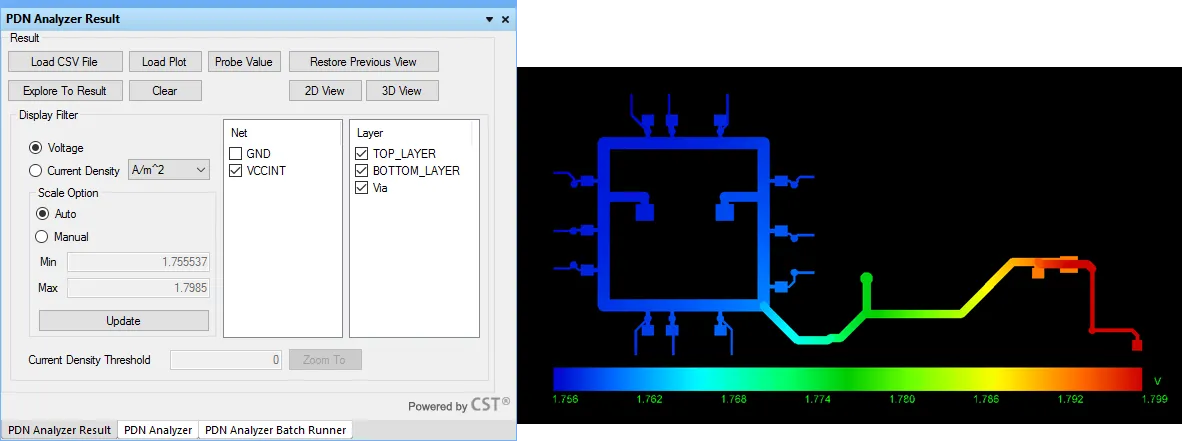The PDN Analyzer powered by CST® application for Altium Designer delivers an easy to use but powerful Power Distribution Network (PDN) analysis tool for resolving DC voltage and current density issues in board layout designs. Provided as an Altium Designer extension, it integrates power integrity analysis into the natural board design workflow.