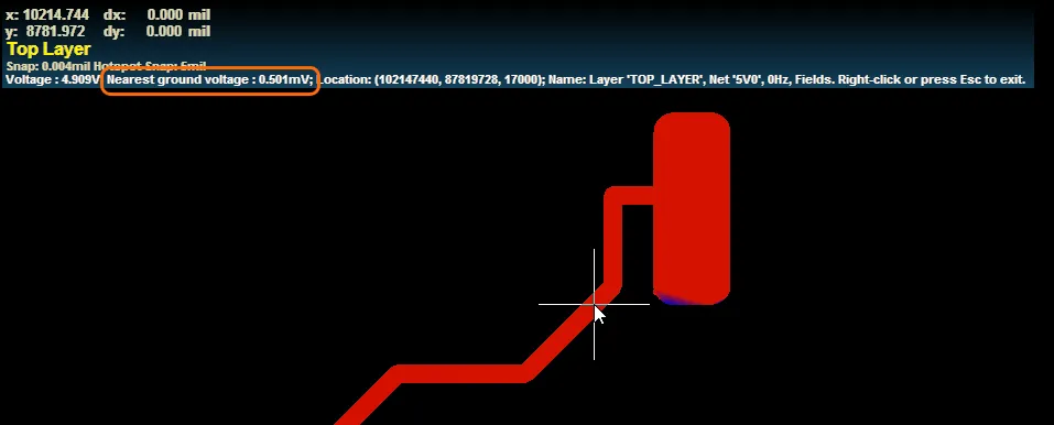 button and a supply rail point in the board shape is selected, Altium Designer’s Heads Up Display now includes a Nearest ground voltage entry along with the location point Voltage and positional data, etc.