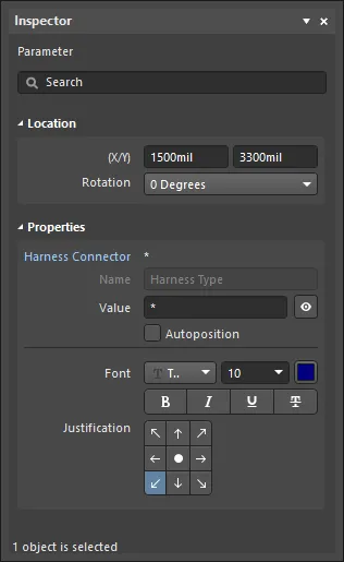 ハーネスコネクタ(Harness Connector)オブジェクトは、電気図面のプリミティブです。これは本質的に、複数の信号をまとめてグループ化し、バスやワイヤを含むシグナルハーネス(Signal Harness)を形成するためのコンテナです。ハーネスコネクタはハーネスタイプ(Harness Type)によって定義されます。