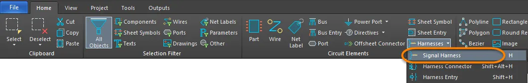 CircuitMakerで回路図シート上のハーネスオブジェクトを扱う