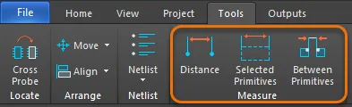 測定ツールは、PCBエディタのリボンメニューの Tools | Measure 領域にあります。