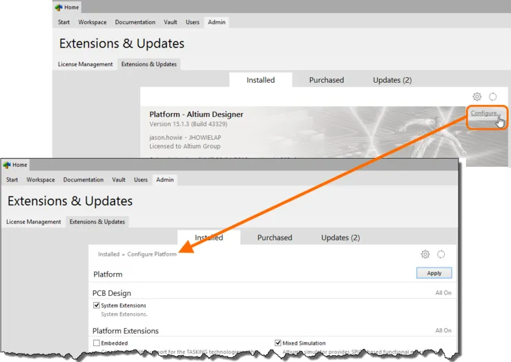最初に、Extensions & Updates 画面の Configure Platform ページを表示します。