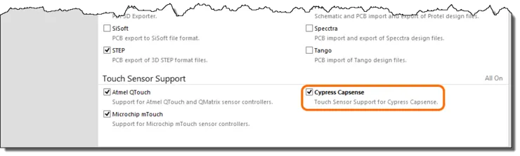 それから、Touch Sensor Support 内の Cypress CapSense オプションを有効にします。