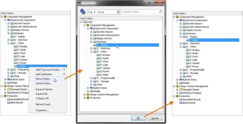 vault のフォルダ構造内で別の場所へフォルダを移動するには 2 つの方法があります: