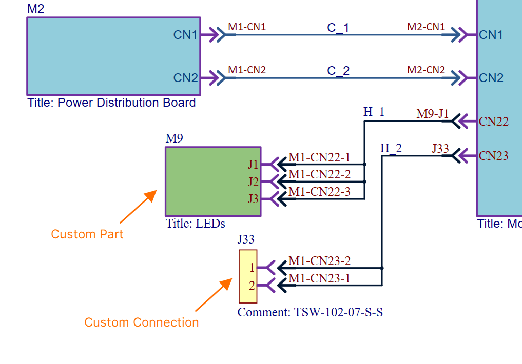 • Direct Connection - used whenever the connector on one board is to plug in directly to the connector on another board without using a physical connection (cable or harness).