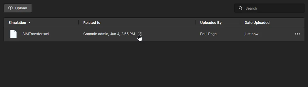 File uploads associated with both Commits and Releases are included on the Simulations page, where file management options are also available.