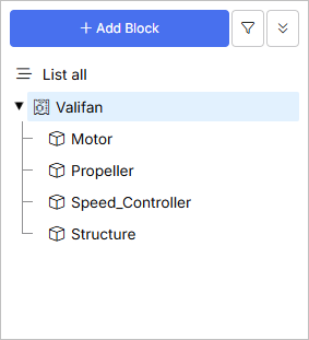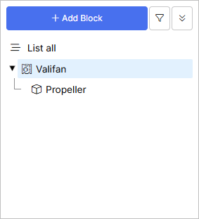 탐색 패널에서 Propeller Block을 마우스 오른쪽 버튼으로 클릭하고 Add Block 명령을 선택합니다. 새 Block의 이름을
