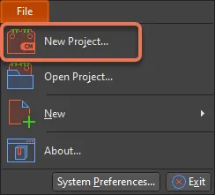 New Project 명령은 Create Project 대화상자를 여는 데 사용됩니다. 모든 설계는 프로젝트 수준 설정(예: 해당 프로젝트 내 각 설계 문서에 대한 링크)을 저장하는 프로젝트 파일에서 시작합니다. 이 명령은 어떤 편집기에서든 File 메뉴에서 접근할 수 있습니다.