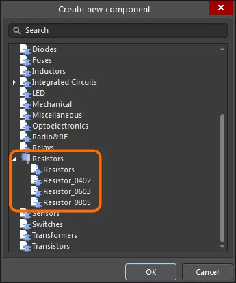 When a new component is being created (File » New » Component), those Templates are offered as sub-entries for the Resistors Component Type in the Create new component dialog.