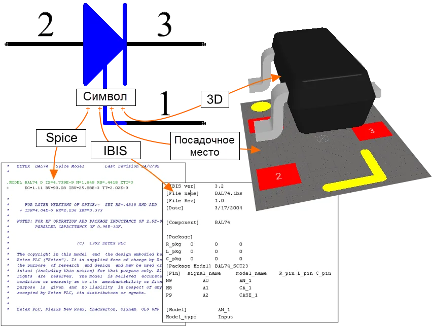 Схемный символ ссылается на прочие модели для полного описания компонента для каждой области проектирования. 3D-модель фактически размещается в посадочном месте – подробнее об этом ниже.
