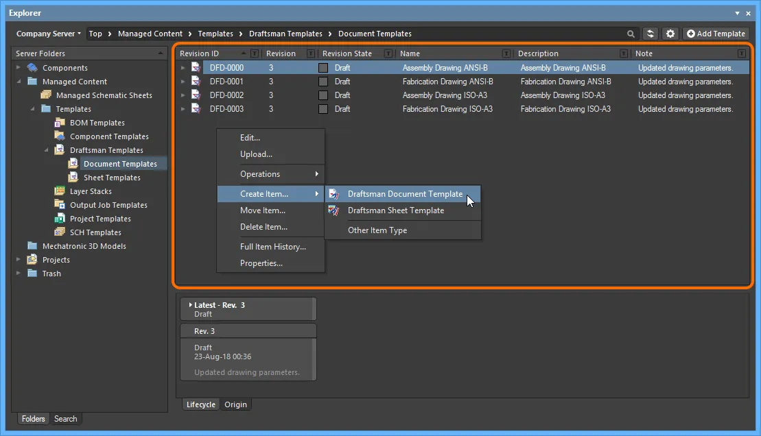 Объекты создаются на сервере управляемых данных. Панель Explorer в Altium NEXUS предоставляет полный интерфейс к серверу.