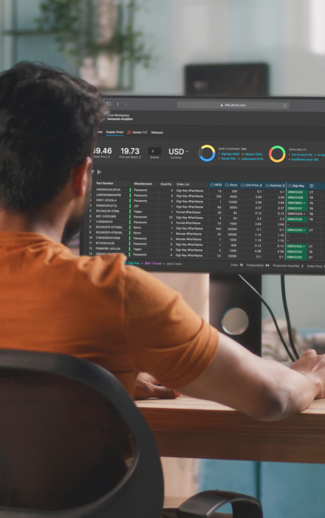 Altium is built for seamless, team-based collaboration across design, engineering, production, and management—it's central to the platform, not an add-on.